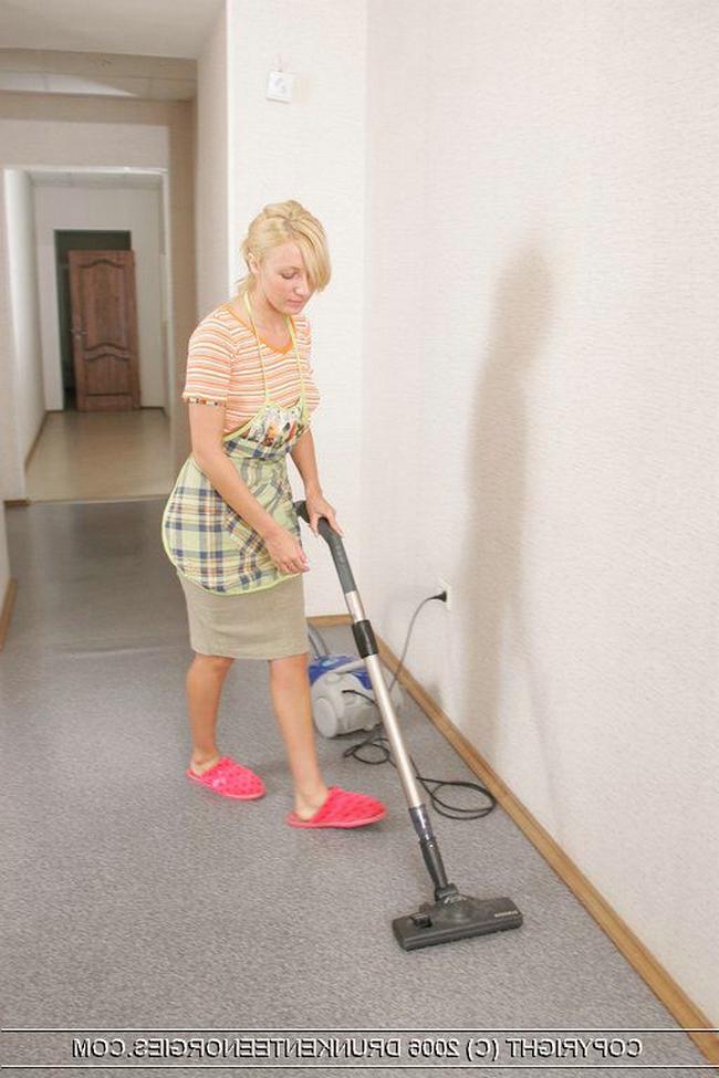 Домработница делала что-то по дому. Ее хозяин с дружками выпивали дома и пригласили к себе. Она не отказалась. Мало того, еще и на групповой секс согласилась.
