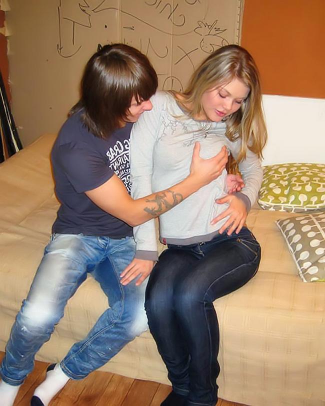 Девушка пригласила в гости своего дружка. Они немного выпили и сразу придумали чем заняться. Умостились на мягкой кроватке и слились во едино своими половыми органами.