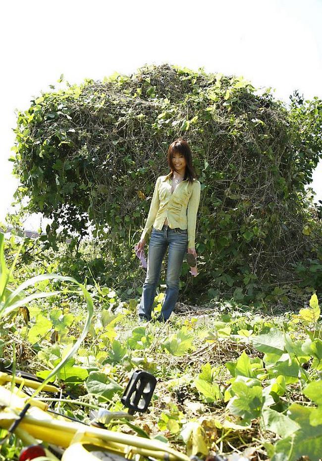Деревенская азиатка решила пошалить на свежем воздухе. Она прогуливалась на велосипеде, выбрала местечко по уютнее и перешла к шалостям. Пальчиками ласкала свои титьки, усердно потирала клитор и ебала себя в пизду, пока оргаз не получила.