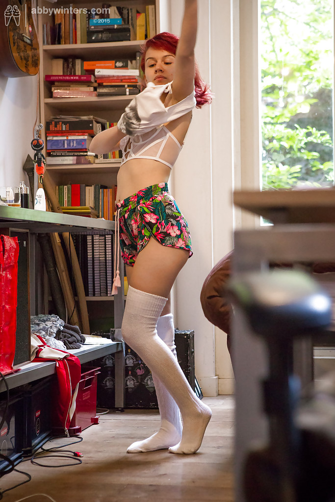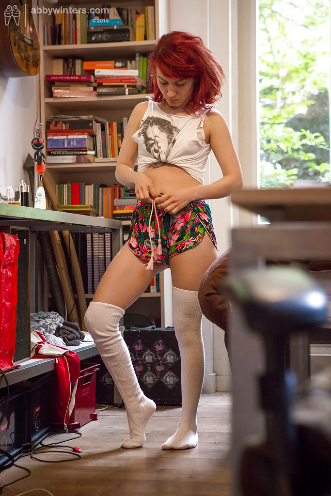 Рыжая бестия не знала о том, что на столе установлена камера, поэтому она смело сняла с себя одежду и надела нижнее белье.