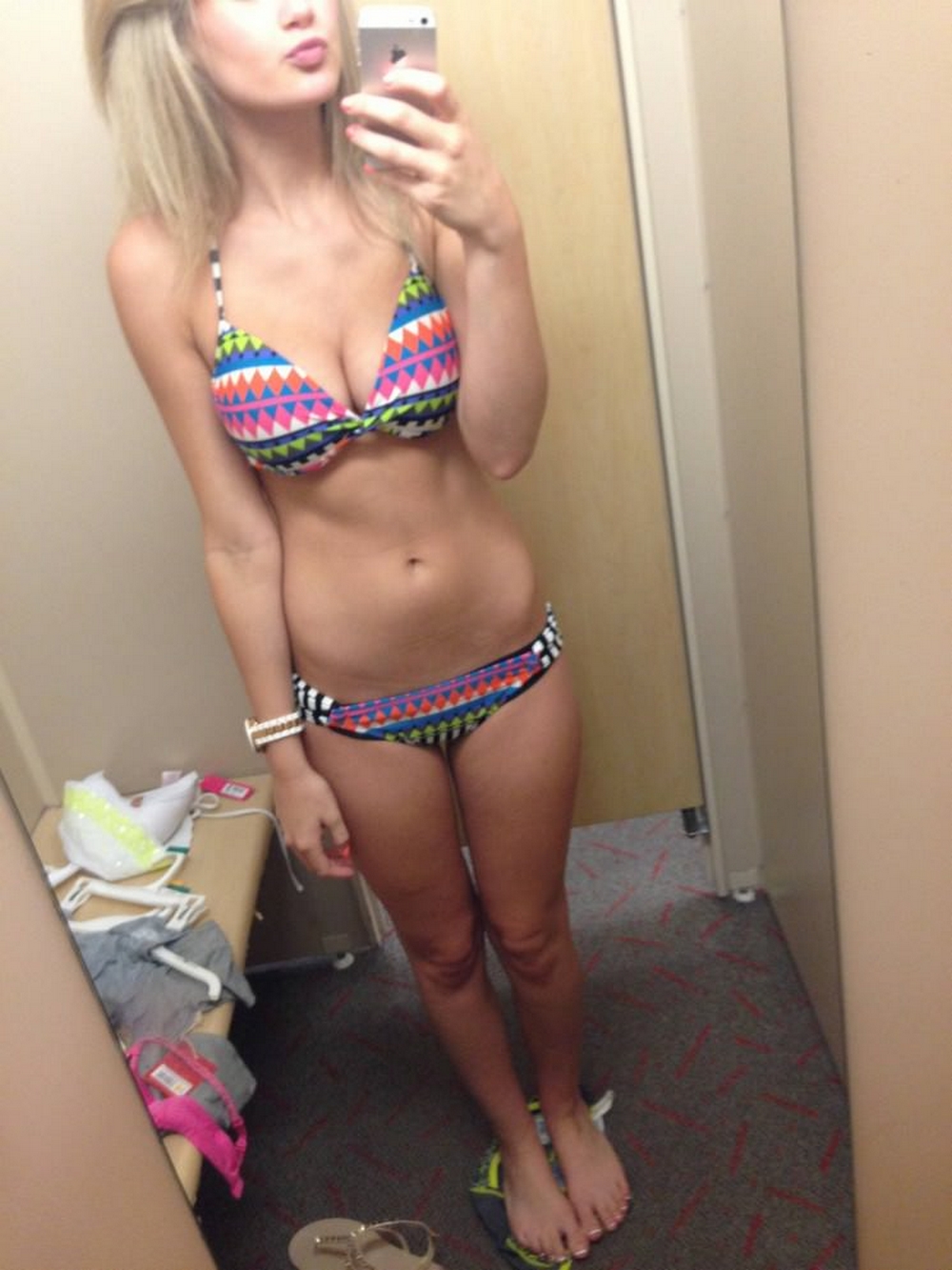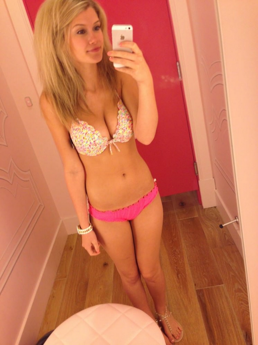 Белокурая красавица с большими дойками любит фотографировать свое обнаженное тело. Чаще всего она делает это в ванной.