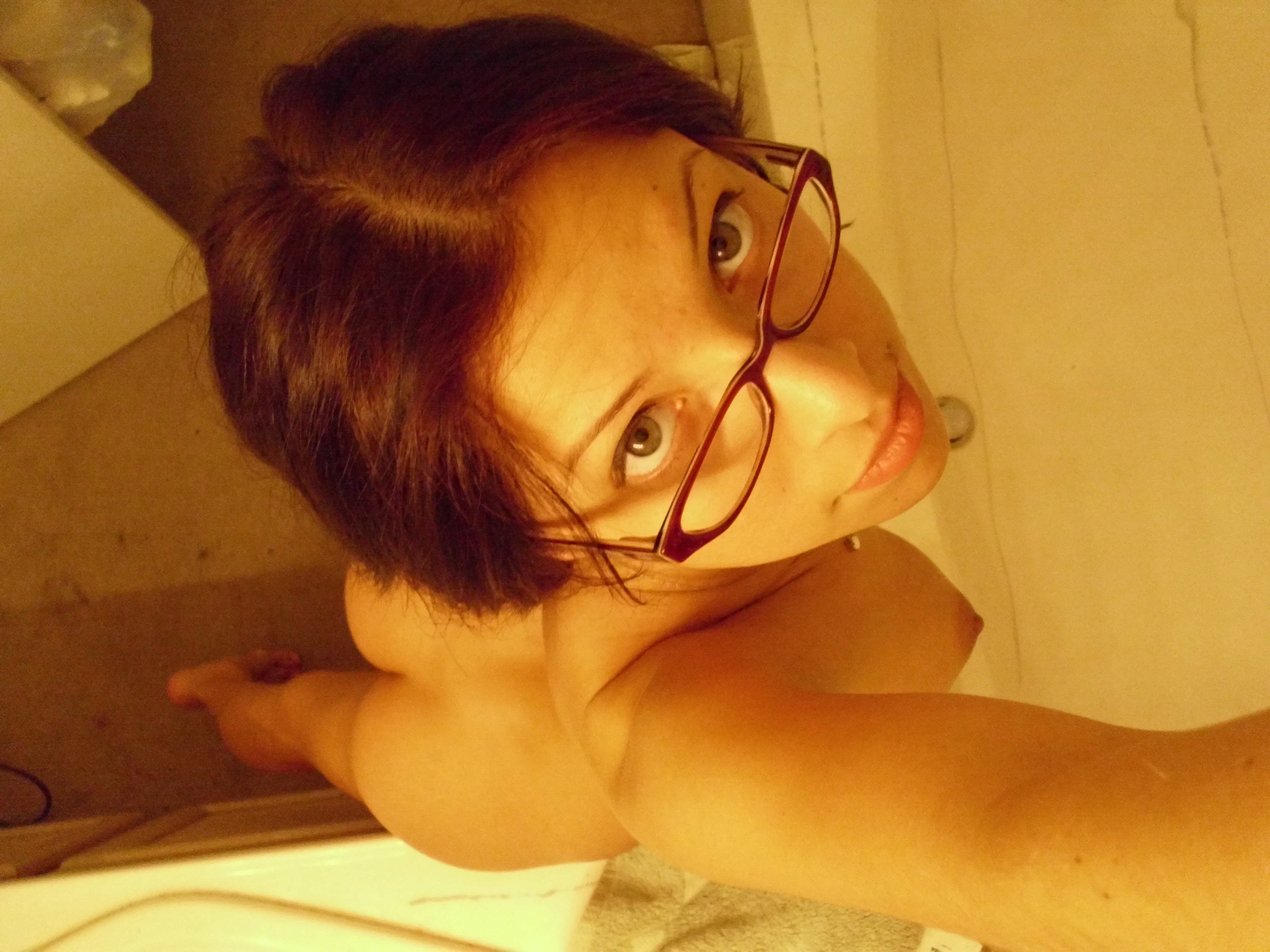 Молодая красавица с большими сиськами и плоским животиком отправляется в ванную комнату, где свободно может попозировать перед зеркалом.