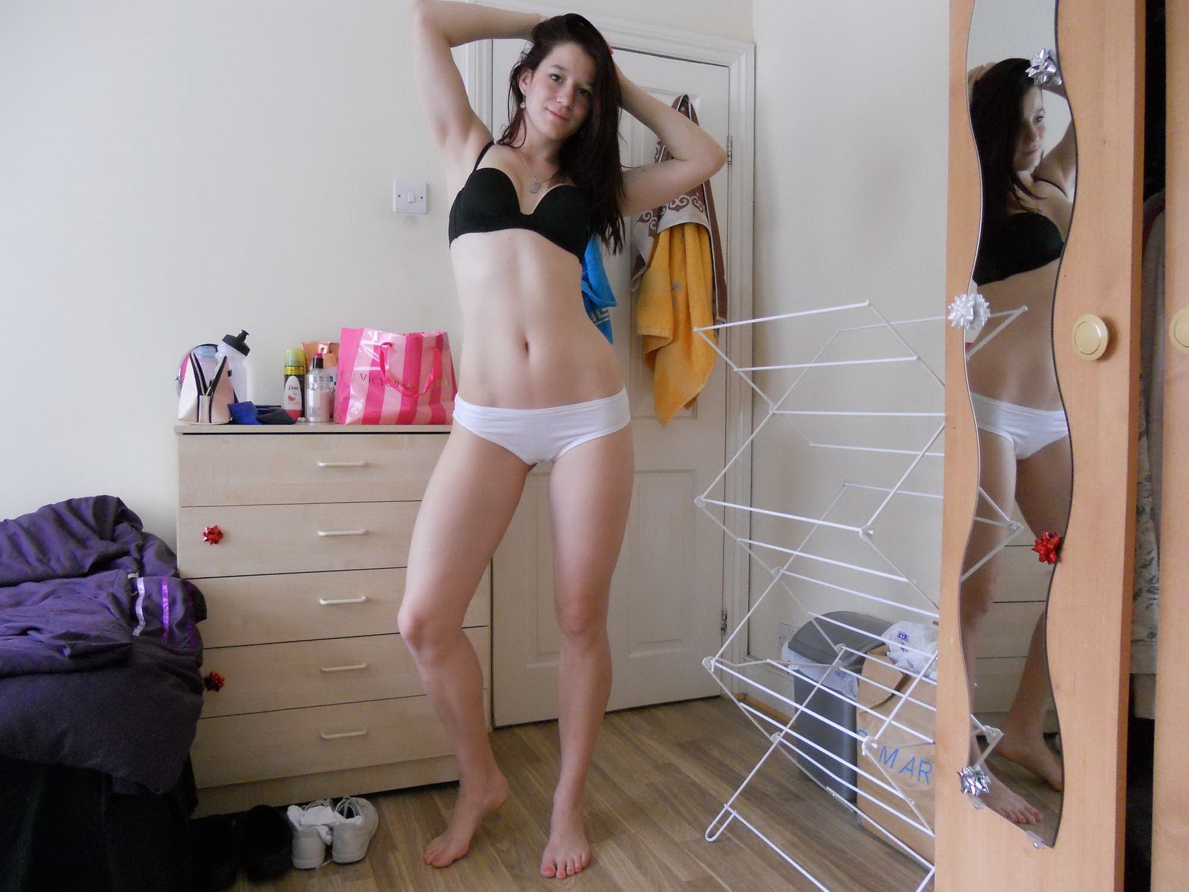 Худая брюнетка любит позировать голышом и в нижнем белье перед камерой, так как считает свое тело привлекательным.