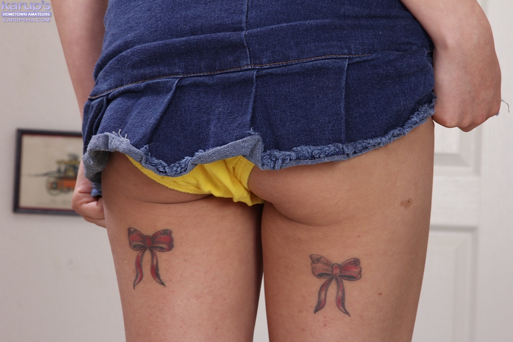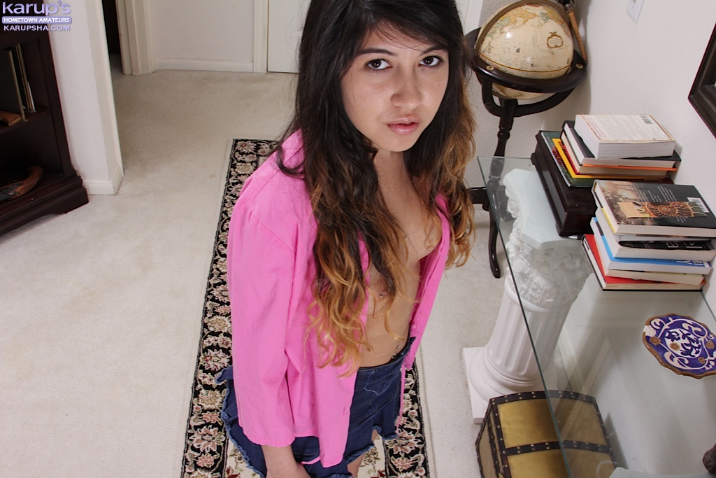 Молодая девушка, расположившись в гостиной, начала неспешно снимать с себя вещи и выставлять напоказ интимные места. Оставив на себе джинсовую юбку, нимфа покрасовалась титьками и, опустившись на пол, засветила щелку. Затем молодуха полностью разделась и продолжила хвастаться своей сочной промежностью.